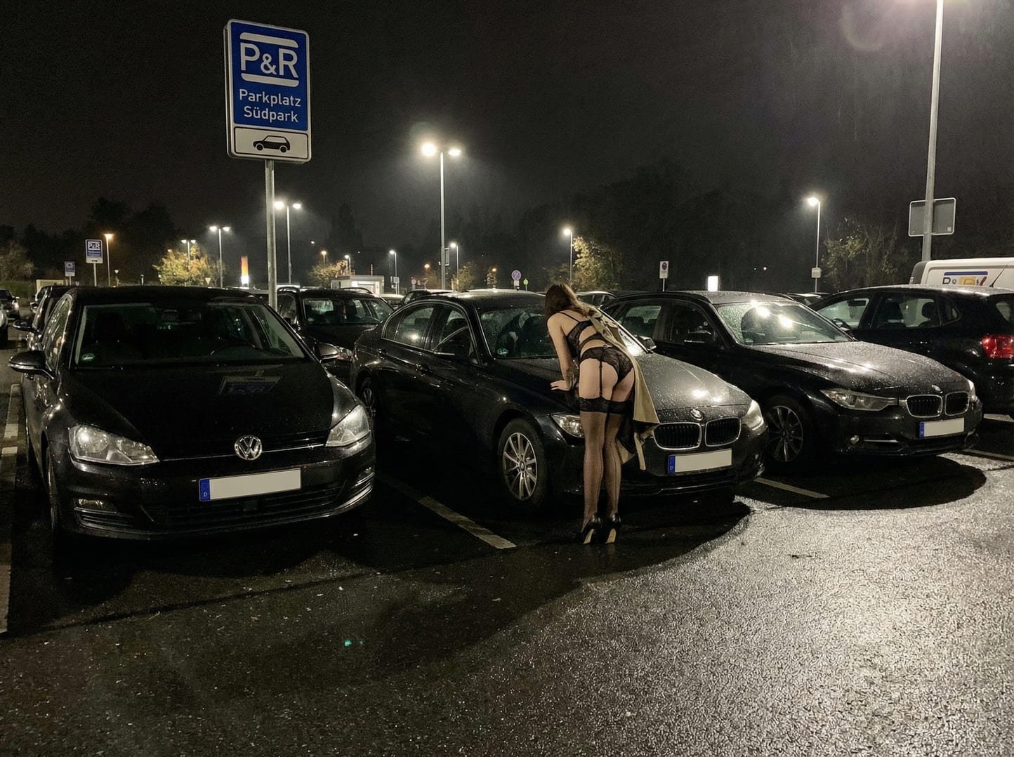 Ab 19 Uhr finden auf den hinten Reihen des PKW-Parkplatzes diskrete Treffen für schnelle Blowjobs oder Handjobs im Auto. Ab 21 Uhr, wenn es dunkler wird, kommen auch schwule Männer für schnellen Sex. Sie treffen sich nicht direkt auf dem Parkplatz, sondern auf dem Platz daneben, da wo die E-Roller Station ist. Von dort kann man sich schnell in die Büsche zum ficken verstecken.