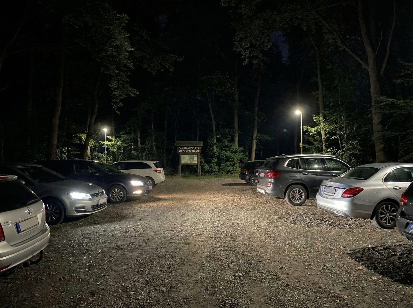 Am Schönenkamp gibt es einen Waldparkplatz, sichtgeschützt aber sehr gut zu erreichen. Er befindet sich auf der Straße „Am Schönenkamp“ (endet genau dort und wird zur „Hülsenstraße“) auf der Seite des Benrather Forstes.